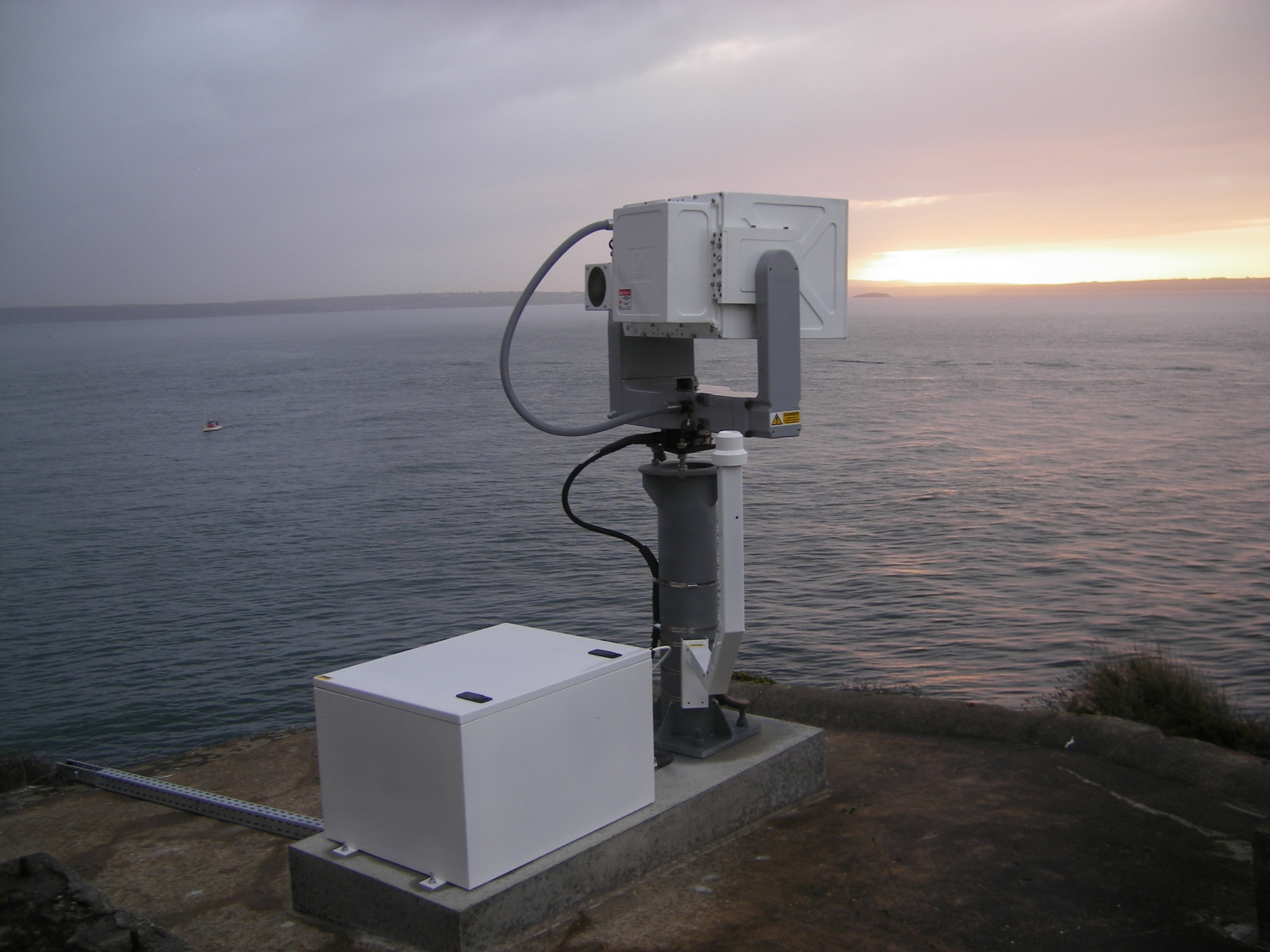 La buse est installée sur le support de la caméra situé sur le côté de l'ARGC, en dehors du champ de vision. Le réservoir et le système de pompe sont installés au pied de la caméra. Ils sont résistants aux intempéries et le cabinet est facile à ouvrir pour la maintenance et le remplissage. Le tuyau du réservoir d'eau coule dans le bras de la buse et l'eau est propulsée par la pompe localisée à l'intérieur du réservoir. Quand l'opérateur appuie sur le bouton de nettoyage de la caméra dans l'interface usager, le devant de la caméra ARGC se tourne vers la buse, la pompe envoie l'eau pressurisée dans le tuyau d'eau et un jet mince mais puissant sort de la buse pour nettoyer les fenêtres externes de la caméra.